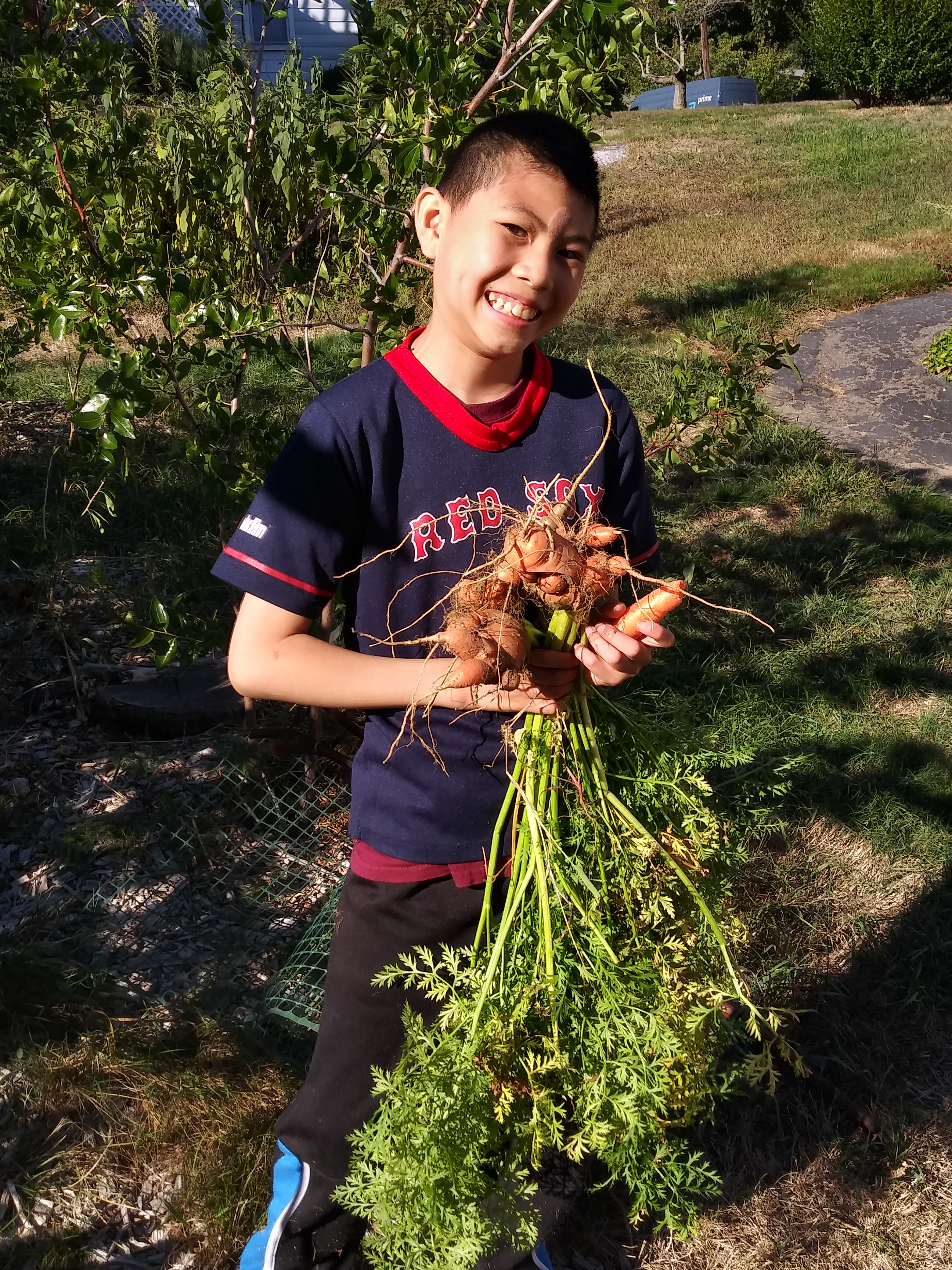 Please join us next year and while I love carrots, I close with this photo of me with a couple of beets and if you can put seaweed down on your garden in the next month or so your beets too may grow this big. As we take from the earth in harvest we should always give back more in compost and my favorite compost is seaweed. We are growing carrots and food but our real goal is healthy soil. May the love of a really good carrot build our soil and add to our lives, one child, one garden, one experience at a time.