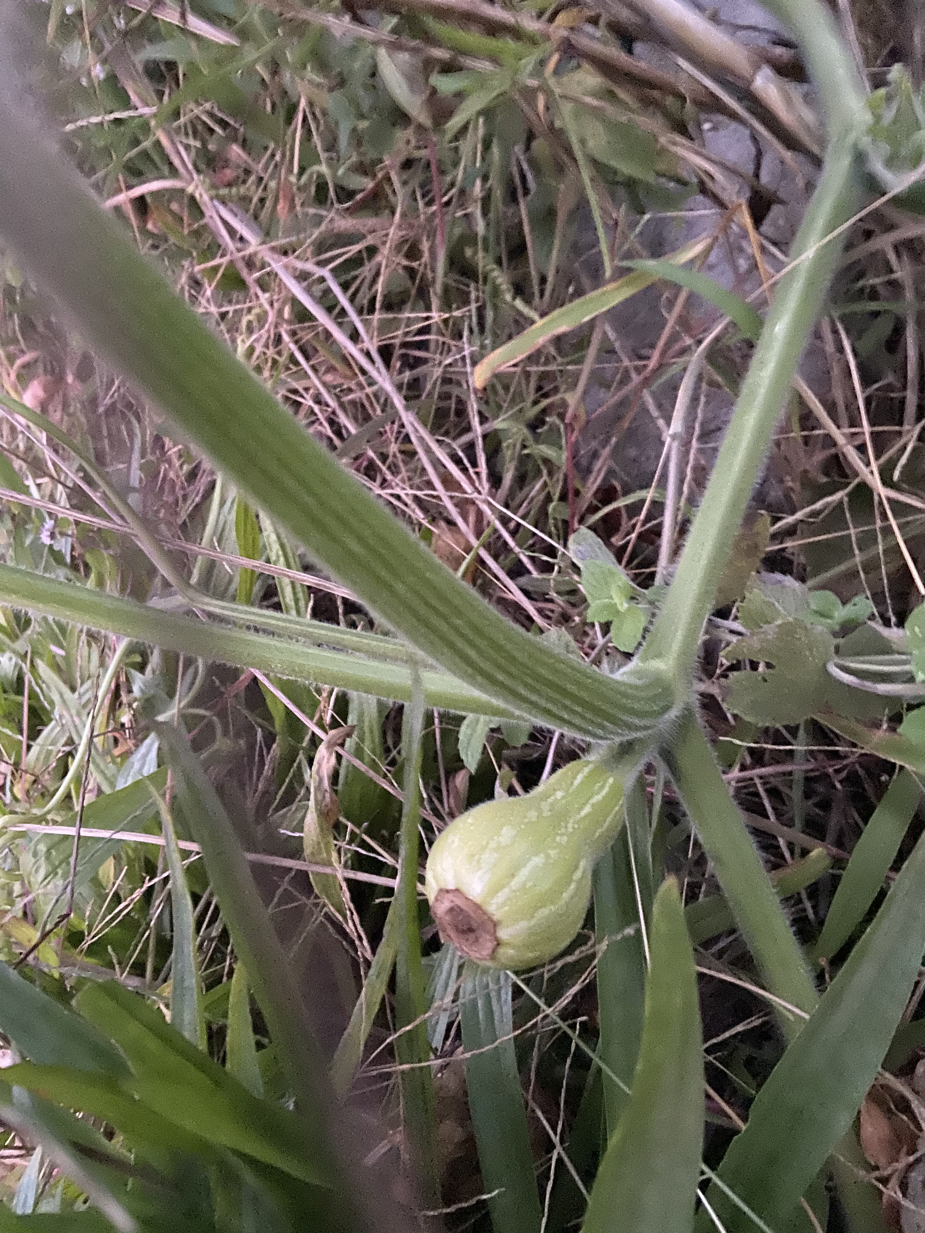 From left to right: just pollinated, maturing, almost ripe butternut squashes.