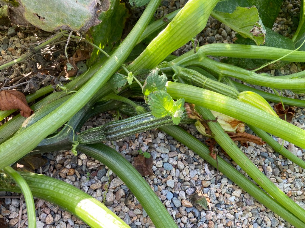 On August 2nd the tomatoes were not yet in full swing and while they never came in the abundance of most years we did get some and since mid September Katy and I have had all we could eat and cook. These past two months the stars of the garden have been greens, zucchini, and cucumbers. This is peak season for greens. The zucchini has hung on and is still making the occasional fruit. They are not producing like they were, but they are still growing and one of the plants has traveled twelve feet from its origin. Last year for the first time we grew a variety called Costata Romanesca Zucchini and this variety has transformed how I think about Zucchini. I can’t imagine ever doing without it. For cucumbers we planted both National Pickling and Suhyo Long Cucumbers. There were days in August when I would wander around the neighborhood giving away cucumbers and after I put up 16 quarts of pickles Katy told me that was enough. I planted a late crop of cucumbers dreaming of a second crop in September and October but something attacked the plants and they never amounted to anything. Sometimes it is like that.