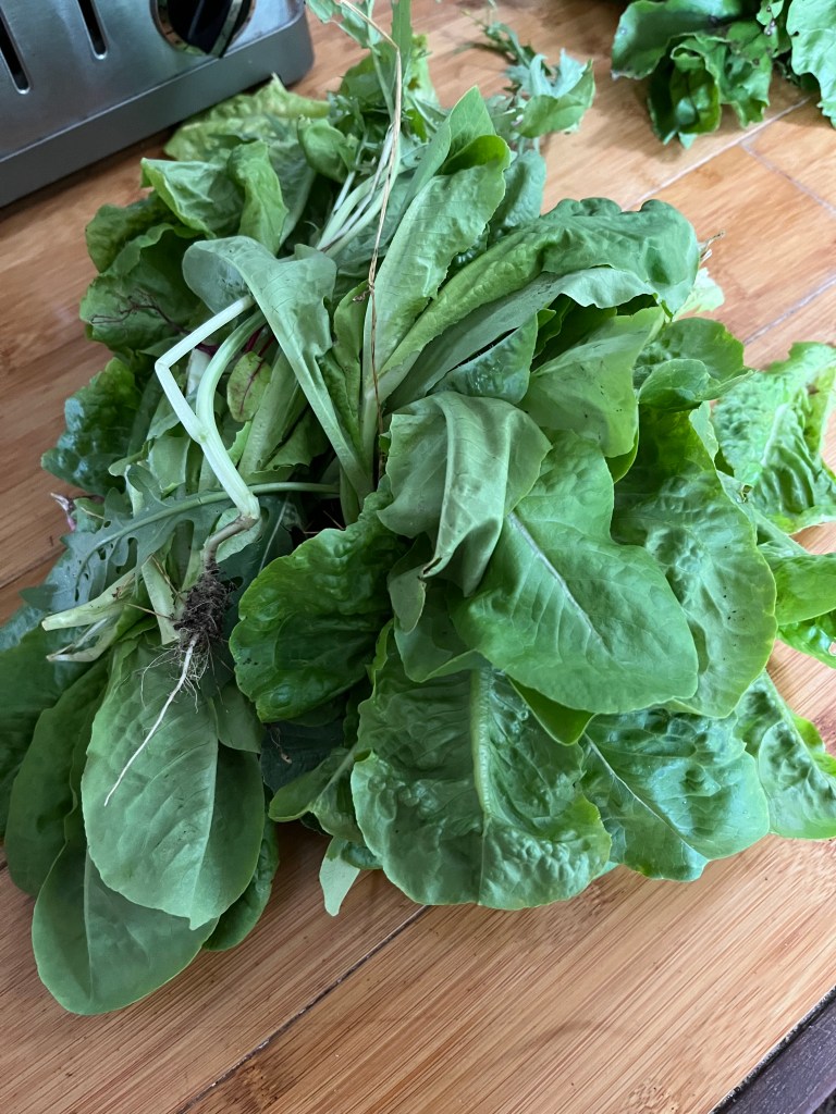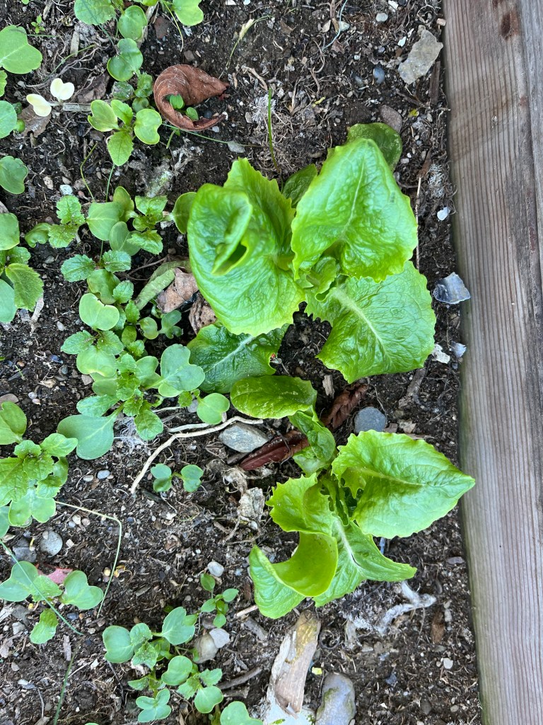 Other lessons we learned: Cover the brassicas (broccoli, cauliflower, cabbage) to prevent flies from laying eggs that become root maggots (very bad); cover them to keep off moths and keep worms out of broccoli and worm poop off cabbage (ick); use cans or other means to protect stems from cutworms (death knell).